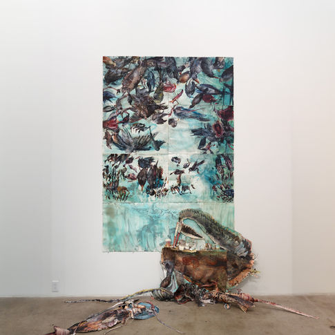 {ink paintings on paper, wire, beads}